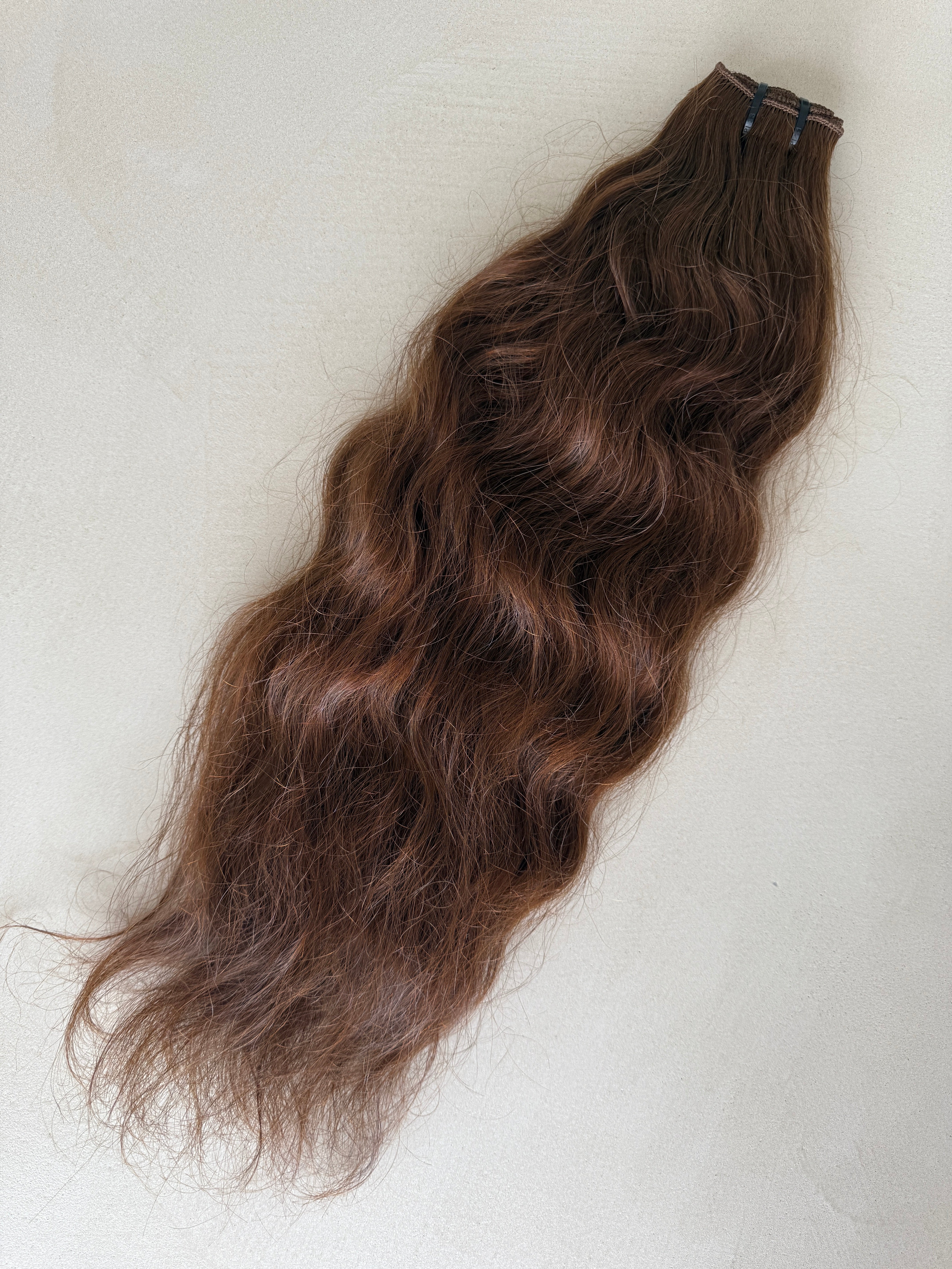 Virgin Indian Temple hand-tied hair. Not colored. Color will not fade.